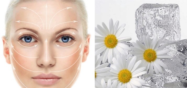 Puede envolver hielo en una gasa y masajear a lo largo de todas las líneas de masaje de la cara, moviéndose desde el centro de la barbilla hasta el lóbulo de la oreja, desde la base de la boca hasta las aurículas, desde las alas de la nariz hasta la parte temporal. El hielo se puede hacer en varias formas y con diferentes ingredientes.