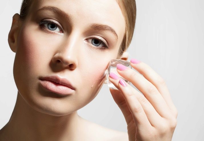 - Para conducir un cubo en varias partes de la cara hasta que comience a derretirse, evitando el sobreenfriamiento de la piel. Para mantener el cubo en un área por no más de 15 segundos, el procedimiento total para la duración es de 3 a 5 minutos. Así que, gradualmente, acostúmbrese a la temperatura baja y al efecto de contraste.