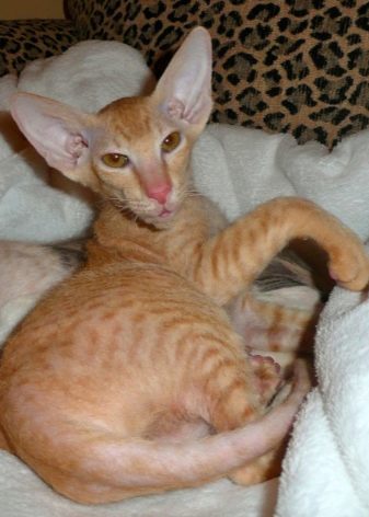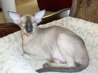 - Veluuri kissanpennut. Heidän hiuksensa ovat koko vartalonsa, mukaan lukien tassut ja häntä. Iän myötä tämä rotu oli kalju kaikkialla, raajoja lukuun ottamatta.