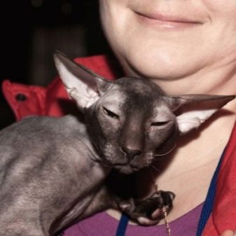 - Rakkauden rakkaus. Tämä luonteenpiirteet seuraavat edellistä. Kalju lemmikki viettää mielellään aikaa omistajan käsissä ja jopa tulla sänkyyn yöllä. Myös tämän rodun kissat rakastavat leikkiä lasten kanssa. Nämä ovat todella kesyjä eläimiä.