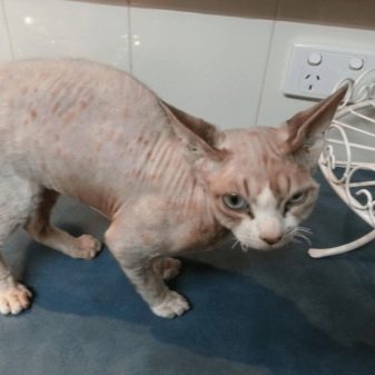 - Huono hygienia. Koska Pietarin sfinksit ovat karvattomia eläimiä, ne vaativat erityistä hoitoa.Rasvakerroksen muodostuminen tapahtuu heidän ihollaan, ja tämä on mukava ympäristö vaarallisten bakteerien kehittymiselle ja lisääntymiselle. Siksi kissa on kylpettävä päivittäin erityisillä suojavälineillä. Myös tämän rodun korviin kertyy usein rikkiä, joka on poistettava vanupuikolla kerran viikossa.
