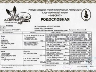 Pennuilla, jotka täyttävät kaikki rodun kriteerit, on sukutaulu. Vanhemmat ilmoitetaan siinä. Tämän asiakirjan avulla kissasi voi osallistua näyttelyihin, koska vain se virallisesti vahvistaa kuuluvansa tiettyyn rotuun. Sukutaulun avulla voit myös jatkaa nurrusi tila-sukua, kun olet saanut samat täysrotuiset pennut.