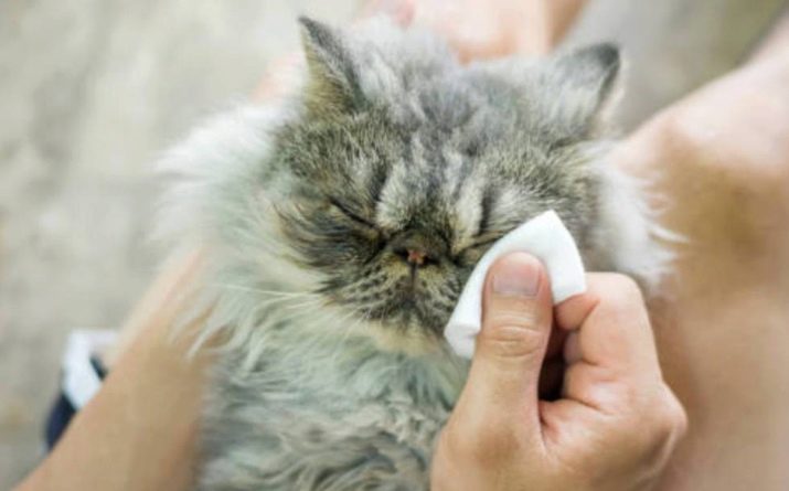 Silmien kosteuttamiseen käytettävä suolisto nestettä tuotetaan intensiivisemmin näissä, siksi turkin kuori voi muodostua viereiselle alueelle. Käytä erityisiä voiteita silmähygieniaan, mutta ei useammin kuin suositellaan rahasto-ohjeissa.