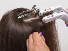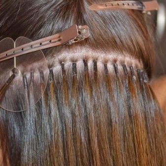 - Kiinnityslangat metallihelmillä - japanilainen tekniikka. Renkaat on valmistettu kermetistä, puristuksella, hiusten yhdistämisen vaikutus saavutetaan. Tämän menetelmän haittana on, että kun renkaita poistetaan, alkuperäiset kiharat usein vaurioituvat.