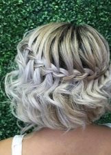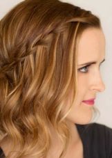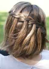 - Vesiputous. Tämä kampaus sopii leikkaamaan neliön jatkeella. Märät hiukset tulee kammata hyvin ja erota sitten nauha temppelistä. Sitten sinun tulee punoa letti tästä lukosta kohti toista temppeliä. Kruunun säikeet on kierteitetty tämän piikkisahan linkkeihin. Toisessa temppelissä myös possuhäntä punotaan nauhasta ja kiinnitetään hiusneulein. Tuloksen korjaamiseksi on tarpeen käsitellä kampaus lakalla.