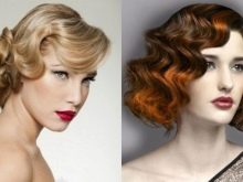 - Aallot retrostyylissä. Tämä vaihtoehto sopii lyhyille hiuksille. Se voidaan tehdä uudenvuoden osuuskunnalle tai juhlaillalliselle perheen ja ystävien kanssa. Tällaisen kampauksen luomiseksi märät hiukset on käsiteltävä vaahdolla, kuivattava hiukan ja kiertynyt kiharoilla. Sitten sinun on luotava volyymi kiharaten juurille kasan avulla. Otsatukka tulee kiertää kihararaudalla ja asettaa toiselle puolelle.