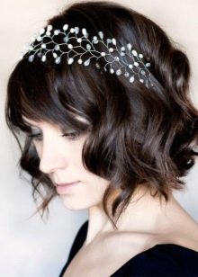 - Kreikkalainen seppele. Jos päätettiin tehdä samanlainen kampaus bob-hiustenleikkauksen perusteella, sinun on ensin suoristettava hiuksenne silitysraudalla, jaettava se sitten erottamalla kammalla tai kammalla. Lisäelementti on ohut joustava side, joka on kierteitetty hiuskarvojen läpi, jättäen etukäyrät hieman käpristyneiksi.
