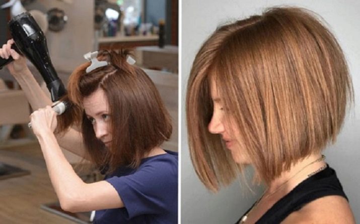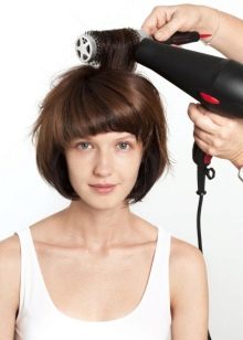 Tämän hiuksen leikkaamiseksi on märkä ja puhdas hiukset hoidettava vaahdolla tai vaahdolla. Tämän jälkeen erotus tulisi tehdä valittua linjaa pitkin kammalla tai kammalla. Harjoittamalla tai hiustenkuivaajalla, jolla on pyöreä kammaliitos, sinun täytyy kiertää etulankoja ohjaamalla lämmin ilma hiuksiin ylhäältä alas. Kruunun juuressa hiukset tulisi nostaa kammalla ja kuivata hiustenkuivaajalla määrän luomiseksi. Suoritettu asennus on kiinnitettävä lakalla.
