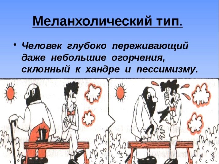 - Melankolinen on helppo satuttaa. Hän on jatkuvasti huolissaan ja epävarma. Nämä ihmiset tuntevat usein huonompia ja itsenäisiä.