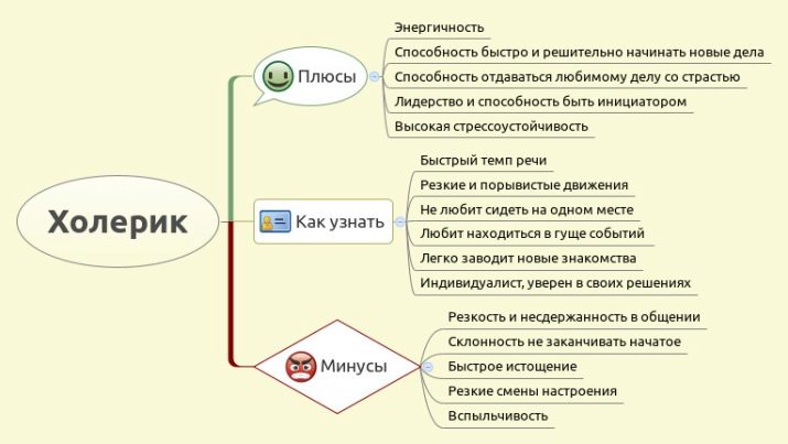 Näissä ihmisissä vallitseva "keltainen sappi" antaa heille kuumakielisen luonteen. Tällaiset henkilöt eivät fysiologisesti pysty hillitsemään sekä positiivisia että negatiivisia tunteita. Kaikki kuulivat ilmaisun "syttyy kuin ottelu". Yksi hankala sana riittää koleerin tasapainottamiseen. Mutta niiden tärkein etu on kyky jäähtyä nopeasti. Koleriikka ei pidä surkeutta ja rakentaa monisuuntaista kostoa koskevaa suunnitelmaa. Jonkin ajan kuluttua nämä ihmiset unohtavat sekä rikoksentekijän että syyn, joka oli väkivaltaisen reaktion aiheuttaja.