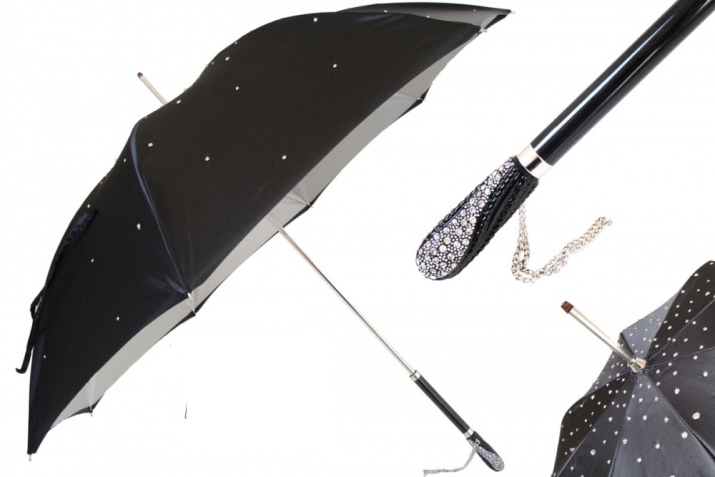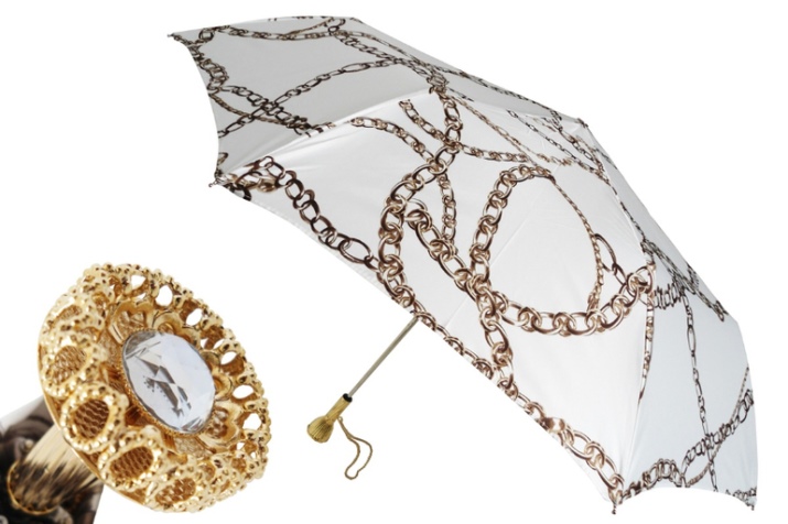 Hyvät sateenvarjot ovat erillinen lisävarustekategoria, joiden valmistukseen suunnittelijat ja valmistajat käyttävät kalleimpia ja epätavallisimpia materiaaleja. Siksi korkea hintalappu. Esimerkiksi Swarovskin kiteillä sisustetun Pasotti-tuotemerkin hinta on noin 360 dollaria. Mallihotelli Il Marchesato, tehty luonnon silkistä ja koristeltu strasseilla - noin 400 dollaria.
