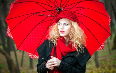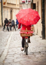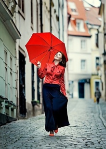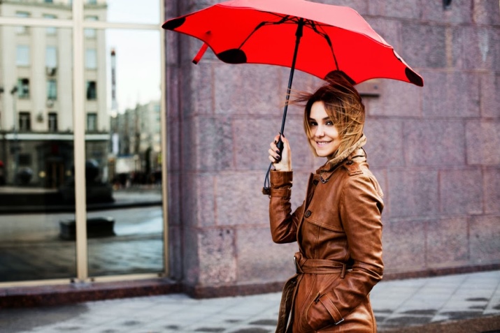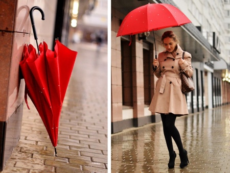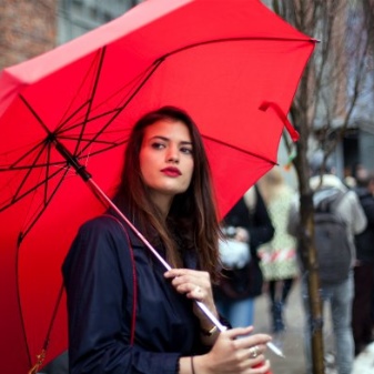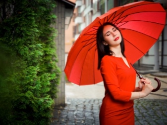 Punainen sateenvarjo on silmiinpistävin ja herättävä lisävaruste! Tällaisesta rikkaasta yksityiskohdasta tulee vaikuttava korostus monien naisten asusteissa. Tällaiset mallit ovat loistava ratkaisu luottavaisille naisille, jotka haluavat erottua joukosta.