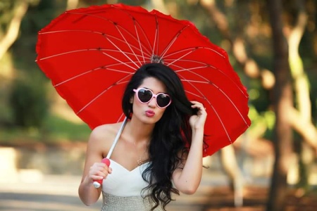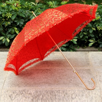 Naisten sateenvarjo seksuaalista punaista väriä näyttää erittäin tyylikäs ja houkutteleva. Se näyttää hyvältä sekä päivittäisissä että lomapukuissa. Hyvin usein nämä kirkkaat tarvikkeet otetaan hääihin tai muotikuvauksiin. Ne näyttävät erityisen vaikuttavalta ja värikkäalta valkoisen lumen taustalla. Tämän värin pääominaisuus on sen sävyrikkaus.