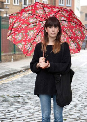 Tyttöjen, jotka eivät voi ylpeillä suuresta kasvusta, tulisi antaa etusija pienille ja kevyille sateenvarjoille. Ne tekevät naisista näyttämään herkemmältä ja viehättävältä.