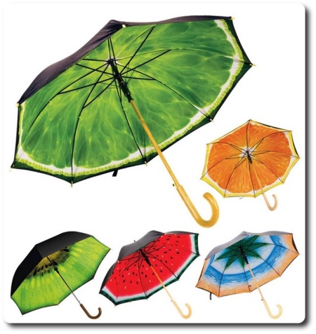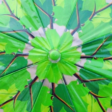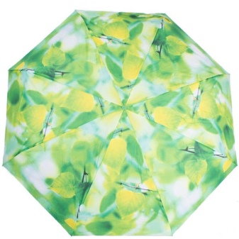 Zest tuottaa mielenkiintoisia alkuperäisiä malleja, joissa kuvassa on puiden vihreät lehdet. Tällaiset kauniit sateenvarjot piristävät heitä yhdellä silmäyksellä! Ne valaisevat täydellisesti harmaan sateisen päivän.