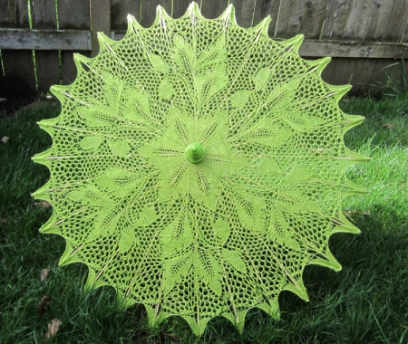 Hyvin epätavallinen ja alkuperäisen näköinen pitsi sateenvarjo, luonnonvihreä.