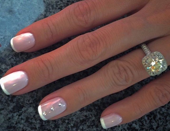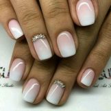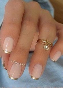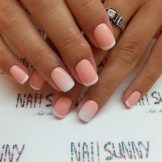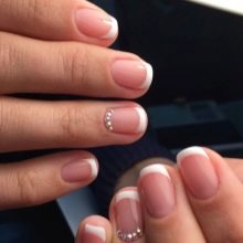 Un classique du genre sera une douce manucure française aux couleurs pastel. Sur les ongles courts, il faut le faire avec autant de soin que possible et il est préférable de mettre la pointe au carré.