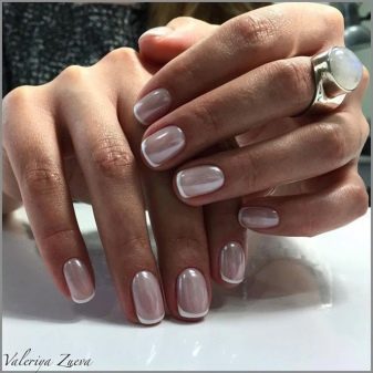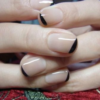 Ce type de gaine signifie que ce n'est pas la pointe de la plaque à ongles qui est mise en valeur, mais la zone de sa croissance sous forme d'arc. Les ongles courts conviennent également à la mise en œuvre de ce style. L'essentiel n'est pas d'exagérer cette zone et il est conseillé d'utiliser des couleurs claires pour la manucure.