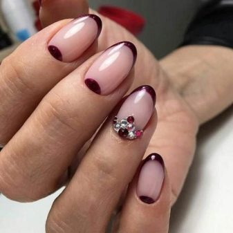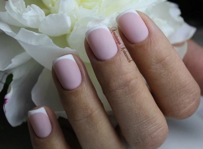 Une autre excellente solution française consiste à utiliser un vernis mat. Il donnera à la manucure douceur et aspect velouté. De plus, pour un style d'entreprise, un tel outil est le bienvenu. Une combinaison de vernis mat et de strass brillants est également appropriée.