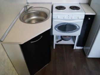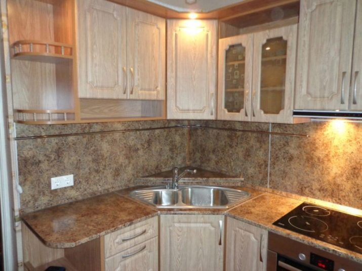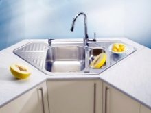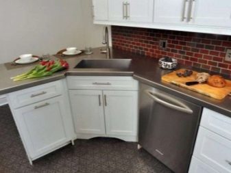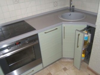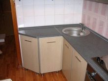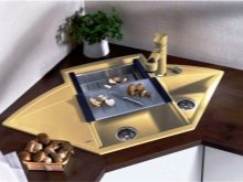 Pour les petites cuisines, l'ensemble d'angle est considéré comme une option idéale. Le mobilier est compact et semble soigné. Beaucoup ne peuvent pas décider quel meuble placer dans le coin. Le plus souvent, un évier est placé dans le coin de la pièce.