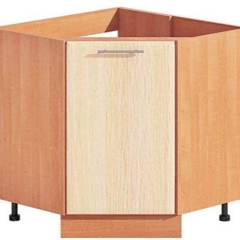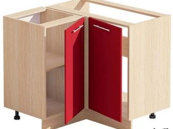 Les armoires d'évier inclinées sont pratiques et pratiques. Mais l'armoire avec un coin biseauté présente plusieurs inconvénients. Le mobilier a l'air un peu massif. Et aussi, lors du choix d'un piédestal incliné, il est nécessaire de choisir correctement le contenu interne de l'espace, sinon il sera difficile de se rendre dans des coins éloignés.