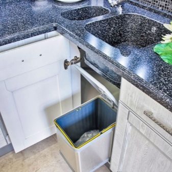 Un bac à litière peut également être situé dans l'armoire. Par exemple, une poubelle coulissante peut être fixée sur la porte de l'armoire, ce qui garantira l'utilisation la plus pratique.