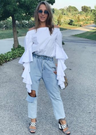 Mais tout le monde a noté que la chanteuse avait choisi une très bonne combinaison, portant un jean déchiré à la mode avec un chemisier blanc en cascade.