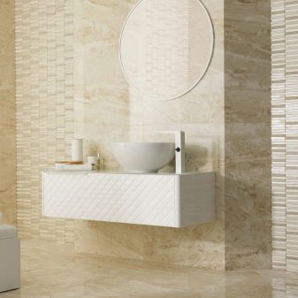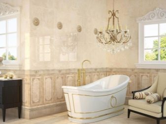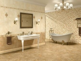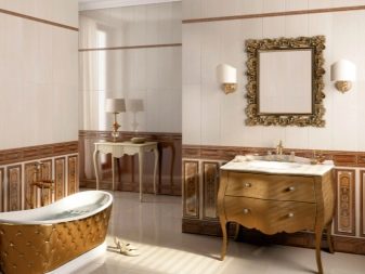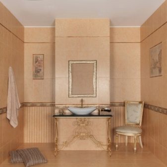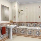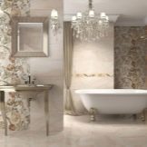 Les styles proposés par les fabricants espagnols ne sont pas moins diversifiés. Par exemple, lors de la décoration d'une salle de bain dans un style classique Vous pouvez choisir des nuances plus foncées pour le bas du mur et disposer une tuile plus claire à l'étage. Pour un style high-tech, privilégiez les tons gris. Dans ce cas également, vous pouvez utiliser des carreaux blancs, des inserts en argent et en verre, imitation de métal. Pour faire une salle de bain Art nouveau carrelage recommandé teintes pastel que l'on retrouve dans la faune, par exemple la version beige.