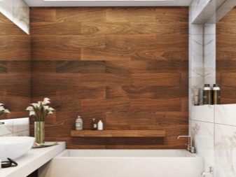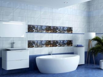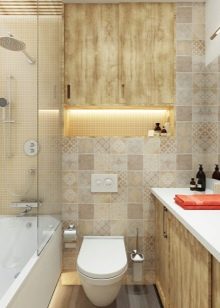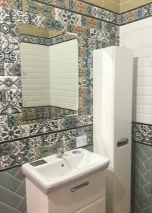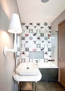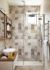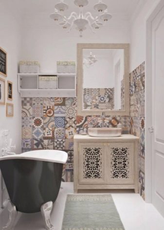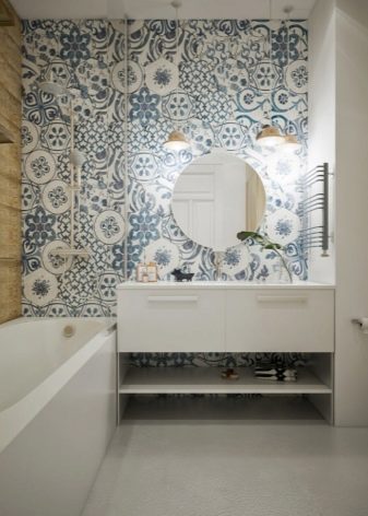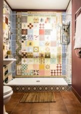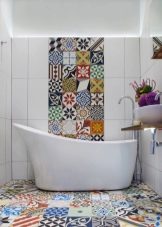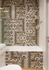 Si vous envisagez de concevoir une salle de bain dans un style patchwork, faites attention à cette option. Le carrelage mural avec un motif thématique est parfait dans un duo avec une finition de sol uni.