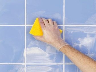 Au stade de la pose préparation de finitions céramiques pour surfaces horizontales et verticales. Après que l'adhésif a séché, le matériau traité avec du mastic. Cela protégera la surface des bactéries fongiques et empêchera les particules de saleté de pénétrer dans les joints entre les carreaux et les microfissures. Pour laver les carreaux, utilisez une éponge ordinaire et une solution savonneuse.