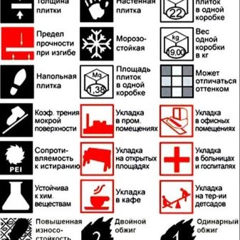 - Pied. Ce signe indique que le matériau est conçu pour être posé au sol. Cette tuile a une haute résistance à l'abrasion.