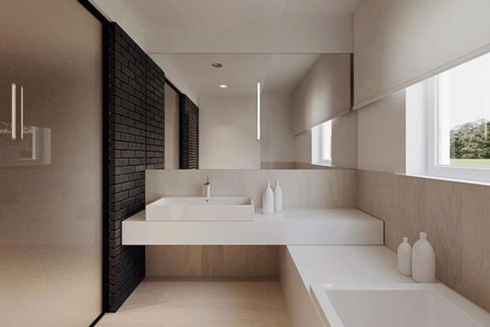 Cette direction décorative diffère considérablement du laconicisme ci-dessus, de la simplicité de la forme et d'une certaine sévérité. Dans ce cas, le meilleur choix est une tuile monophonique, sans motif ni éléments volumétriques. Le minimalisme est idéal pour les petites pièces où il est important de conserver un espace libre maximal.. Optez pour tons calmes et neutres aux couleurs vives. Ils rendront la pièce visuellement plus grande.