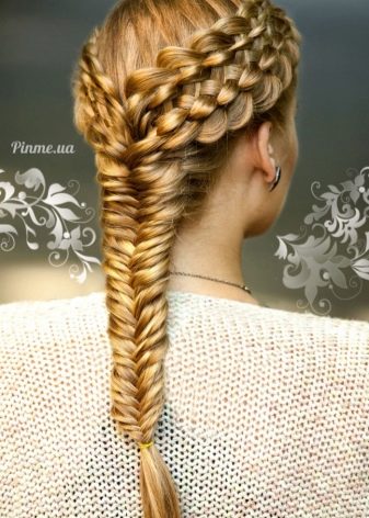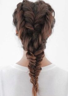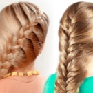 Il existe une autre version de la "queue de poisson" - le soi-disant jumeau. Cette coiffure a l'air très inhabituelle. Convient aux propriétaires de longues boucles, ainsi qu'aux personnes aux cheveux mi-longs.Il est plus facile de tresser ce genre d'épillet pour quelqu'un, mais avec une certaine dextérité, vous pouvez vous faire une coiffure. La tresse peut être tressée droite ou latérale.