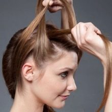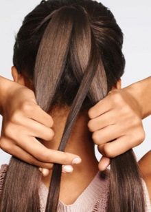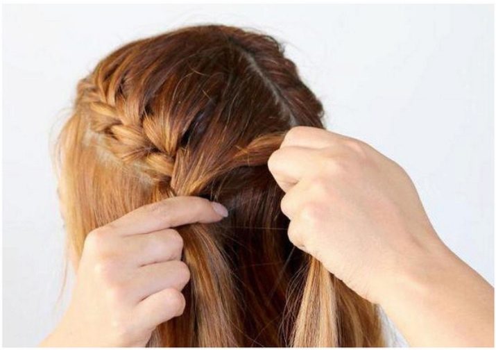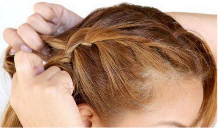 - séparez une petite mèche de la masse principale de cheveux, ajoutez une mèche des cheveux restants puis entrez sous la mèche centrale.