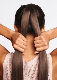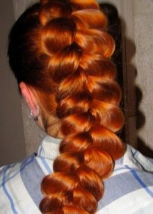 - La queue de cochon finie est fixée avec une bande élastique. Pour obtenir une coiffure convexe, le tissage ne doit pas être serré, mais à la fin du tissage, certains brins doivent être légèrement libérés. Ensuite, la coiffure aura l'air très élégante et élégante. Il est important de commencer la libération des brins à partir de l'extrémité de la tresse, sinon elle pourrait se déformer et gagner des «coqs».