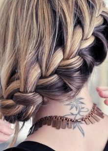 Un épillet tressé autour de la tête, orné d'une petite pince à cheveux avec strass ou d'une épingle à cheveux avec une pierre décorative, attirera certainement l'attention des autres. Une telle coiffure convient à un rendez-vous romantique et à toute célébration en soirée. Un tel style dans les jours d'été sensuels est très bon lorsque vous voulez que votre cou et votre front soient exempts de poils et au moins un peu soufflés par la brise.