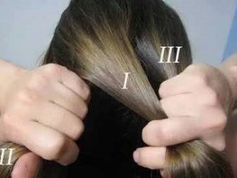 En tressant une tresse sur le côté gauche de la tête, vous pouvez tenir deux brins en même temps avec votre main droite et votre main gauche. L'index de la main gauche doit mettre en évidence un petit verrou, puis la main doit être retournée et mettre le verrou. Dans ce cas, le deuxième doigt de la main droite doit saisir ce verrou. Ensuite, sur le côté gauche est ajouté un autre brin des cheveux tressés restants.