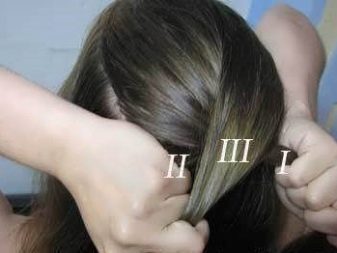 - Les doigts de la main droite (deuxième ou troisième) séparent une petite mèche des cheveux à gauche de la tête. Les premier et deuxième doigts de la main gauche aident. Ensuite, la boucle est décalée dans la main opposée.