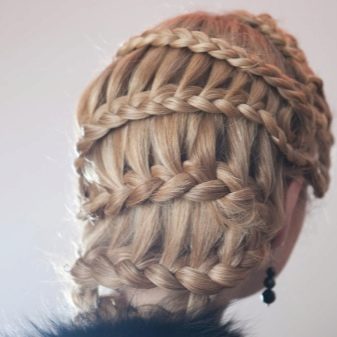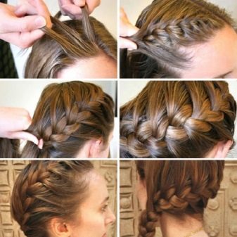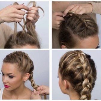 Le tissage est construit de la même manière que si nous tissions un épillet standard, c'est-à-dire que les mèches sont prises alternativement des deux côtés, se croisent et tissent progressivement de nouvelles mèches. En règle générale, cette coiffure tisse d'un temple à l'autre. La tresse est fixée avec de petites épingles à cheveux ou invisible.