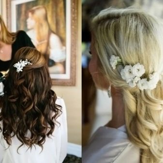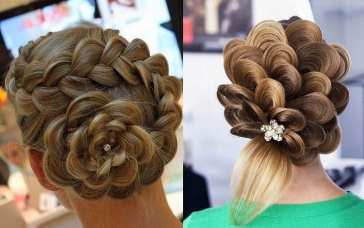 Vous pouvez décorer avec des fleurs toute la tête ou seulement la base de la coiffure, créant l'illusion d'une couronne. Ces éléments sont fixés avec des goujons, un vernis de fixation invisible et résistant. Faire des coiffures avec des fleurs convient à une date ou à un autre événement en soirée.