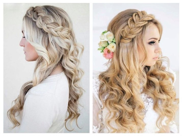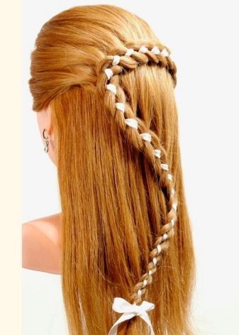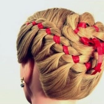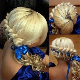 Un épillet avec des rubans et un décor floral en lui-même semble très festif. Si vous complétez la coiffure avec une robe de soirée sur le sol, vous obtenez un look fini et très élégant.
