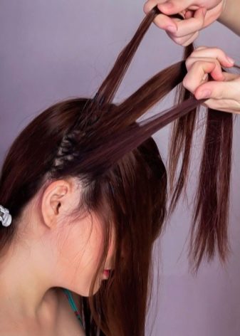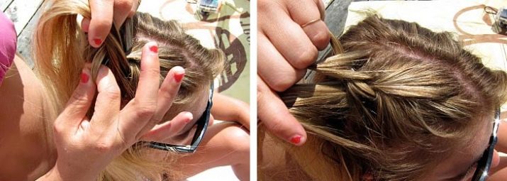 - Boucles latérales pour passer sous le brin central. Pour rendre la coiffure volumineuse, il n'est pas recommandé de serrer fermement les mèches.
