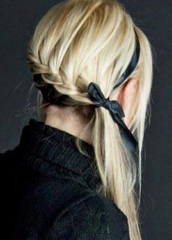 L'épillet classique, fixé à la fin avec un nœud modeste en ruban de satin noir, a l'air très naturel. Les "stars" adorent ces coiffures et ne les refusent même pas sur le tapis rouge.