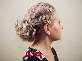 Il existe également des variétés de bouquets très festives, dans lesquelles différents types de tresses sont tissés dans la partie principale de la coiffure. Ils sont un peu plus difficiles à faire, mais si vous y mettez la main, vous pouvez créer de vrais chefs-d'œuvre sur votre tête. De plus, des rubans colorés peuvent être soigneusement tissés dans de telles coiffures, ce qui rendra la coiffure inhabituelle.