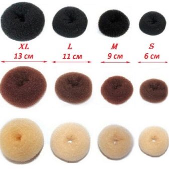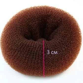 Du diamètre du rouleau dépendra de la façon dont il s'adaptera à la tête et de la solidité de la coiffure. Plus l'anneau où les cheveux doivent être manqués est grand, plus la fixation sera faible et vice versa, plus l'anneau est petit, plus les cheveux seront serrés les uns contre les autres et plus le bagel sera pressé contre la tête, ce qui le fixera beaucoup plus fort.