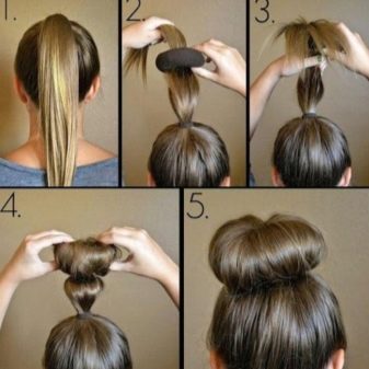 N'oubliez pas que si vous avez de la chance et que vous êtes propriétaire de petites boucles fréquentes, vous devrez vous en débarrasser pendant un certain temps, car le paquet implique des cheveux raides ou de grandes boucles légères, et les petites boucles seront éliminées de la composition globale de la coiffure, perturbant elle. Oui, et il sera difficile de retirer tous les brins sous le bagel, et des difficultés peuvent survenir dès les premières étapes de la création d'une coiffure.Heureusement, si vous vouliez faire un chignon, vous pouvez toujours utiliser un fer à lisser et obtenir pendant un certain temps des cheveux raides qui peuvent facilement être tressés.