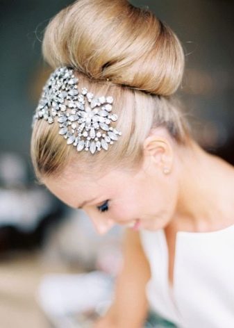 Si vous avez besoin d'une coiffure pour une occasion spéciale, vous pouvez battre le chignon avec un diadème ou un rebord en métal, décoré de pierres ou de motifs et de moulages en métal. Les jantes fines en métal décorées de strass sont très belles sur les cheveux.