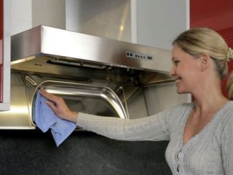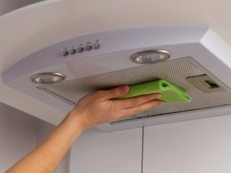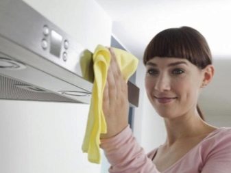 La surface extérieure de la hotte doit être régulièrement nettoyée de toute saleté accumulée. Pour ce faire, tout produit choisi est appliqué sur la base, qui doit être donné un certain temps pour lutter contre l'écume et la graisse. Après la dissolution des contaminants, la composition, ainsi que les inclusions de saleté, sont retirées de la surface avec un chiffon ou une éponge humide.