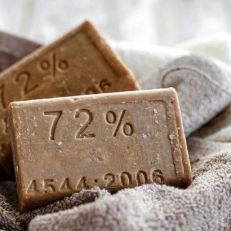 - Pour enlever la graisse, vous pouvez utiliser du savon à lessive. Ils peuvent fonctionner de deux manières: dans le premier cas, il est nécessaire de dissoudre une barre de savon dans de l'eau chaude et d'y plonger les pièces sales, une autre méthode de nettoyage est l'option lorsque la barre elle-même est frottée avec une barre de savon. Après cela, l'eau est versée dans la plaque de cuisson du four, le filet y est immergé et envoyé au four préchauffé. Le processus d'ébullition prendra environ 30 minutes. Après cela, les pièces doivent être rincées à l'eau.