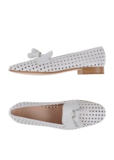 A fehér perforációval a fekete perforáció népszerű trend lett. A hófehér talppal és a megerősített hátoldalú modellt a fűzőlyukakba menetes bőrcsipkével díszítik. A csipke finom íja a mokaszin lágy akcentusa lesz.